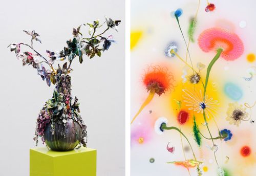 Nature and flowers also appear in Feuz’ sculptures, wherein dead and withered pieces of nature are revived with psychedelic spray colors and reincarnated as colorful ‘memento mori’ in Feuz’ universe between nature-figuration and abstraction.